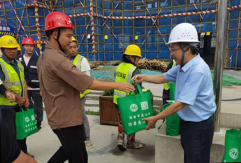 7月22日,四川省總工會(huì)黨組成員、副主席苗勇一行,赴城投公司承建的雅安市工人文化宮項(xiàng)目現(xiàn)場(chǎng)開展夏季“送清涼”慰問活動(dòng)。雅安市委常委、統(tǒng)戰(zhàn)部部長(zhǎng)、市總工會(huì)主席李蓉,市總工會(huì)黨組書記、常務(wù)副主席趙雅玲等陪同慰問。