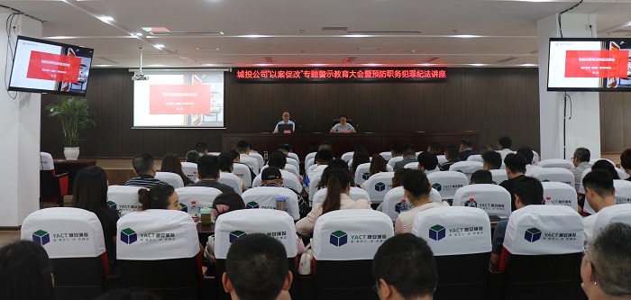 為深入推進公司黨風(fēng)廉政建設(shè)和反腐敗工作,切實增強全體干部職工的法律意識與廉潔風(fēng)險防控能力,筑牢拒腐防變的思想防線,9月11日,城投公司組織召開“以案促改”專題警示教育大會,邀請四川發(fā)現(xiàn)(雅安)律師事務(wù)所專職律師代陽作預(yù)防職務(wù)犯罪專題紀(jì)法講座。公司黨委委員、紀(jì)委書記陳柯潔主持會議并講話,在家黨委班子成員出席會議。