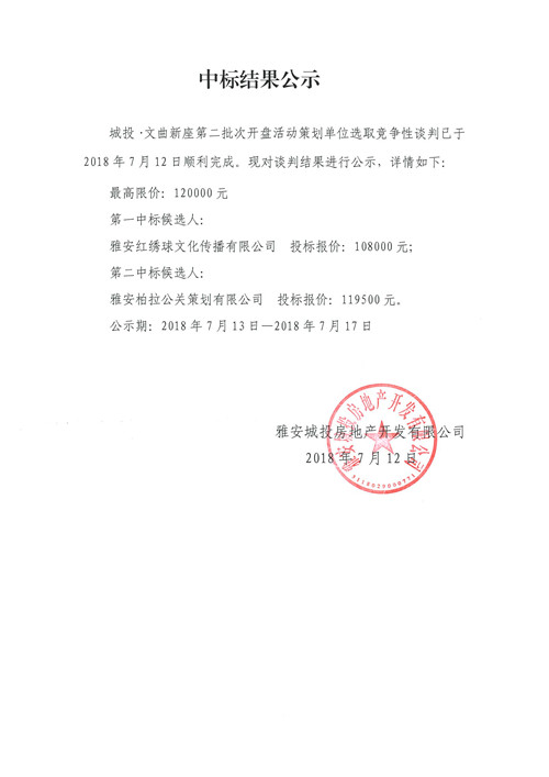 城投·文曲新座第二批次開盤活動競爭性談判中標(biāo)結(jié)果公示