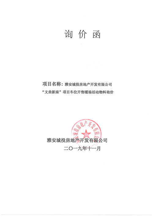 雅安城投房地產(chǎn)開發(fā)有限公司詢價(jià)函
