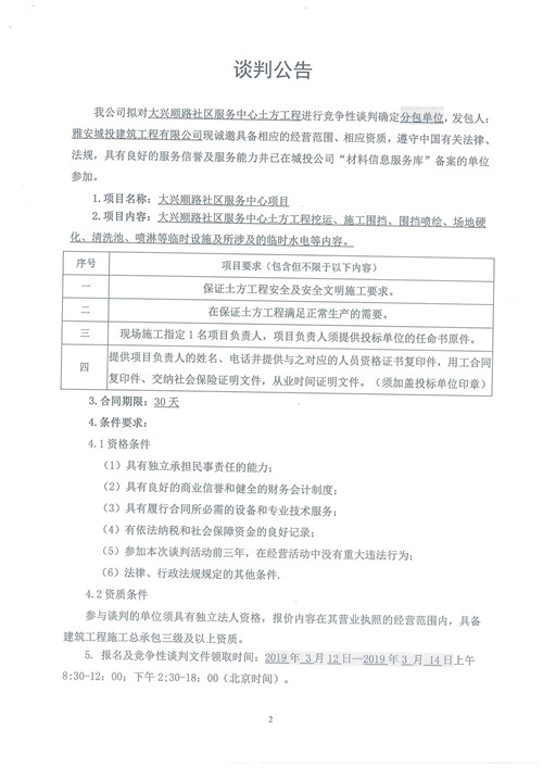 大興順路社區(qū)服務中心土方工程競爭性談判公告