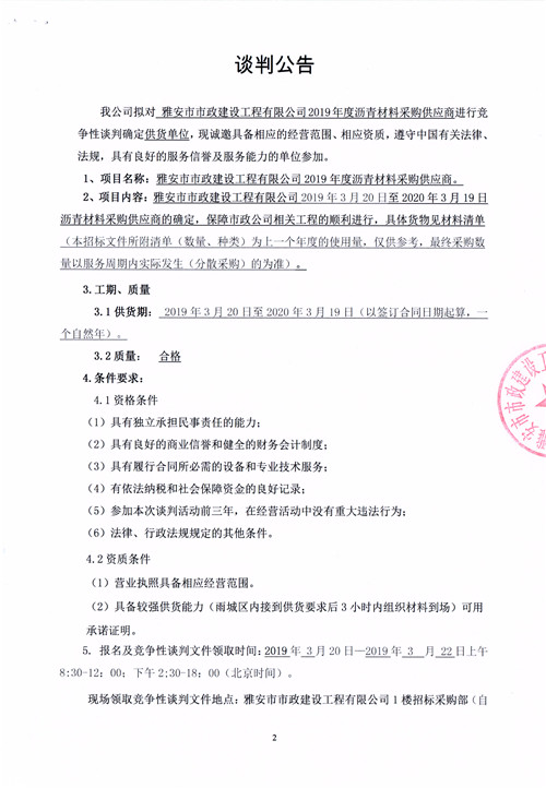 市政公司2019年度瀝青采購(gòu)供應(yīng)商競(jìng)爭(zhēng)性談判公告