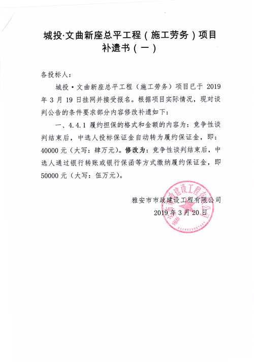 城投·文曲新座總平工程(施工勞務(wù))競(jìng)爭(zhēng)性談判公告補(bǔ)遺一