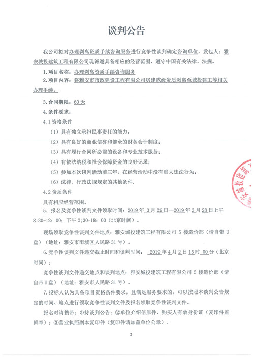 辦理剝離資質(zhì)手續(xù)咨詢服務(wù)競(jìng)爭(zhēng)性談判公告