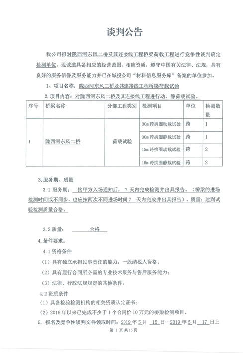 隴西河?xùn)|風(fēng)二橋及其連接線工程橋梁荷載工程競(jìng)爭(zhēng)性談判公告