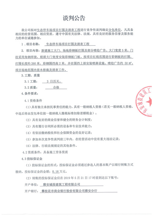 生態(tài)停車場(chǎng)項(xiàng)目打圍及清表工程競(jìng)爭(zhēng)性談判公告