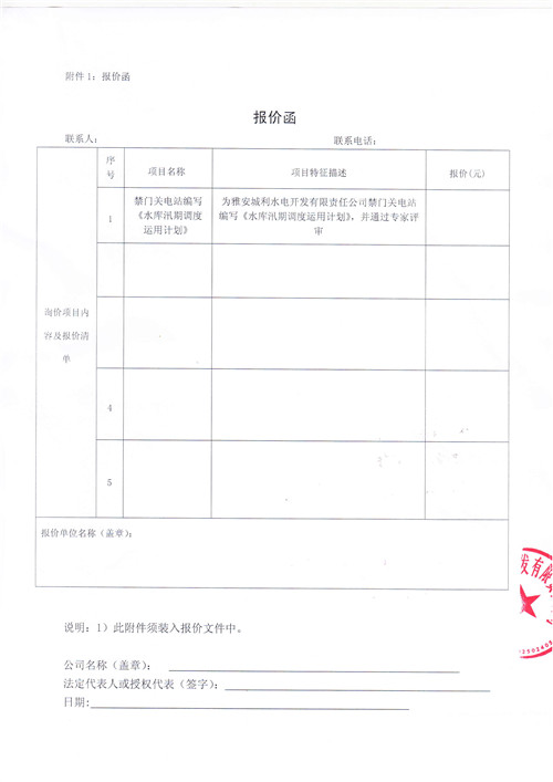 詢價(jià)函(《水庫(kù)汛期調(diào)度運(yùn)用計(jì)劃》)