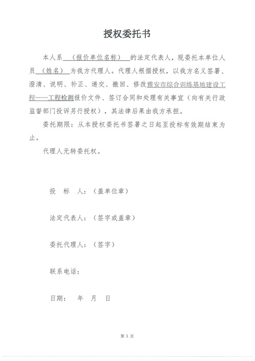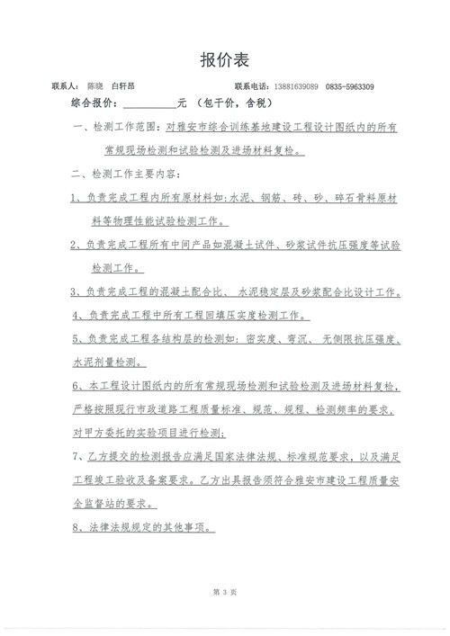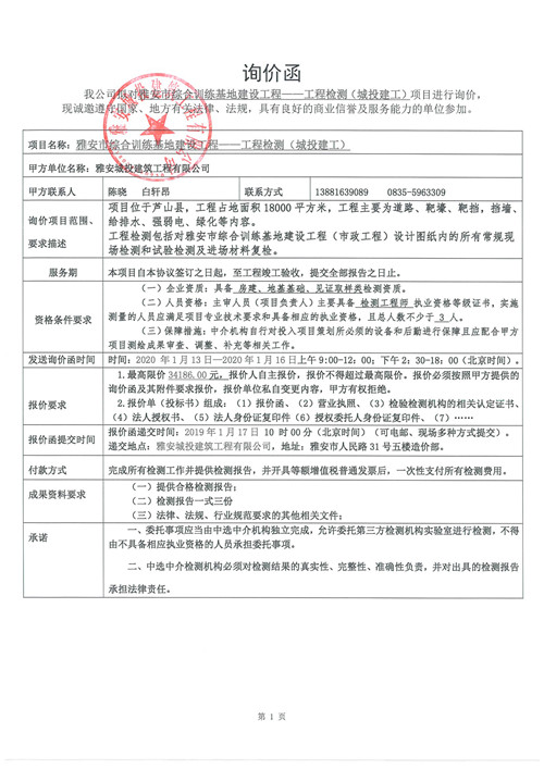雅安市綜合訓(xùn)練基地建設(shè)工程——工程檢測詢價函(第二次)