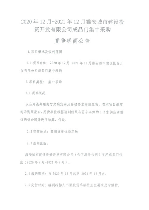 2020年12月-2021年12月雅安城市建設(shè)投資開(kāi)發(fā)有限公司成品門(mén)集中采購(gòu)競(jìng)爭(zhēng)磋商公告