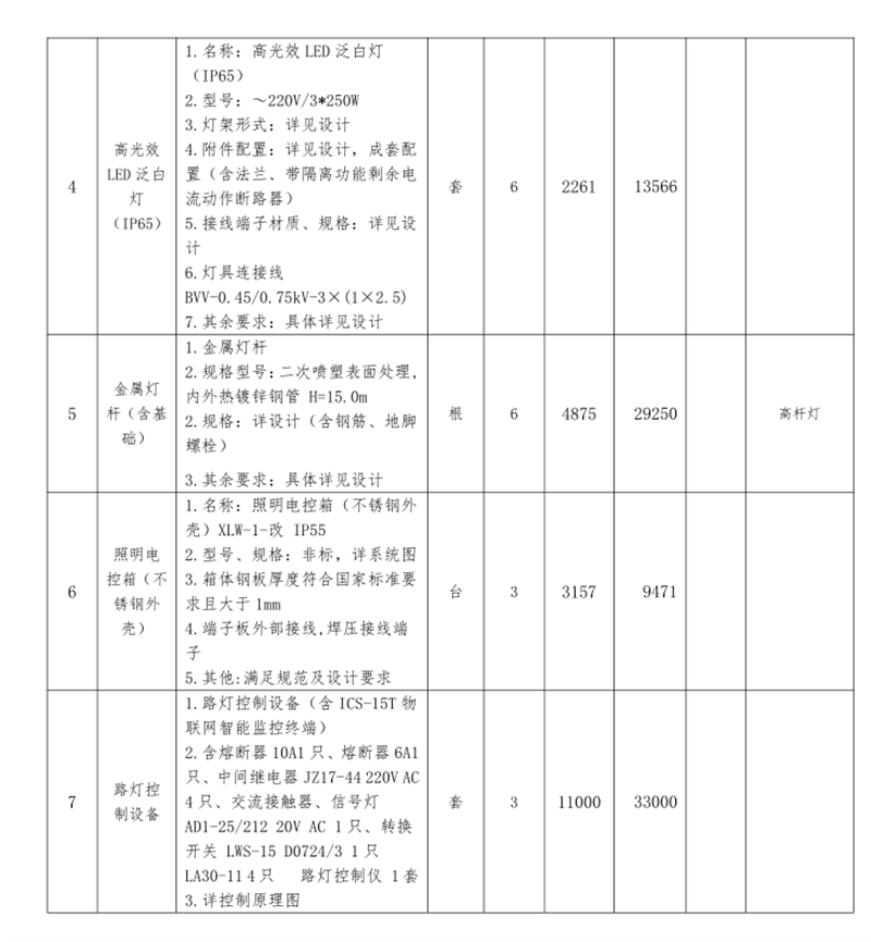 2.1項(xiàng)目內(nèi)容:雅安文教新城市政道路恢復(fù)重建項(xiàng)目(一標(biāo)段)照明工程材料采購供貨商的確定,保障市政公司相關(guān)工程的順利進(jìn)行,具體貨物見材料清單(本招標(biāo)文件所附清單(數(shù)量、規(guī)格、種類)僅供參考,最終采購數(shù)量實(shí)際發(fā)生(分散采購)的為準(zhǔn))。