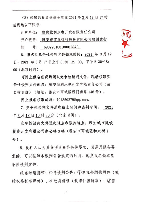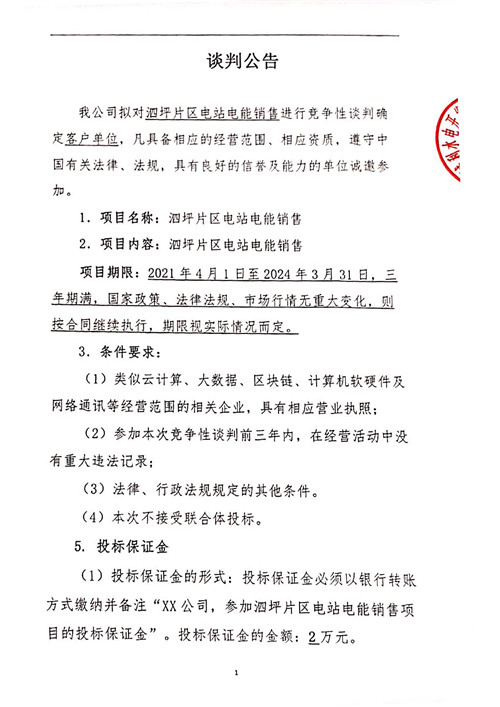 城利水電公司泗坪片區(qū)電站電能銷(xiāo)售競(jìng)爭(zhēng)性談判公告