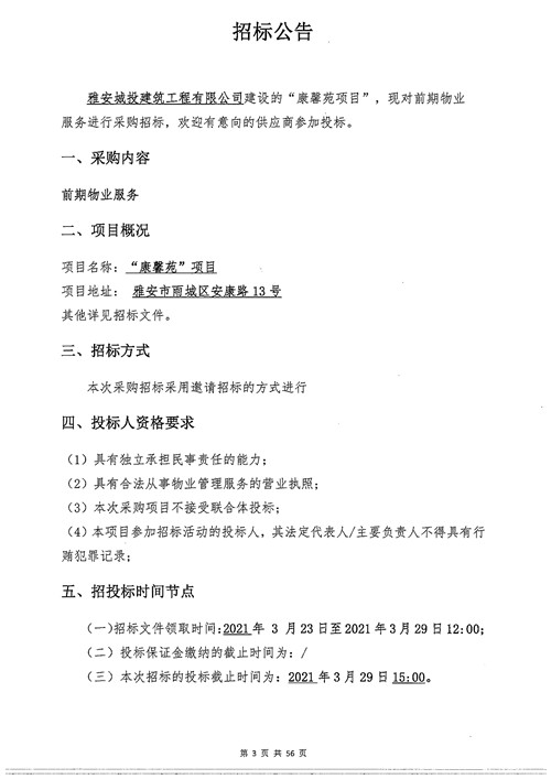 城投建工公司康馨苑項目前期物業(yè)服務招標公告