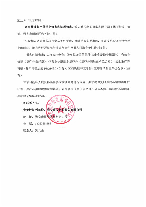 城投物業(yè)公司項(xiàng)目人員工作服采購(gòu)競(jìng)爭(zhēng)性談判公告