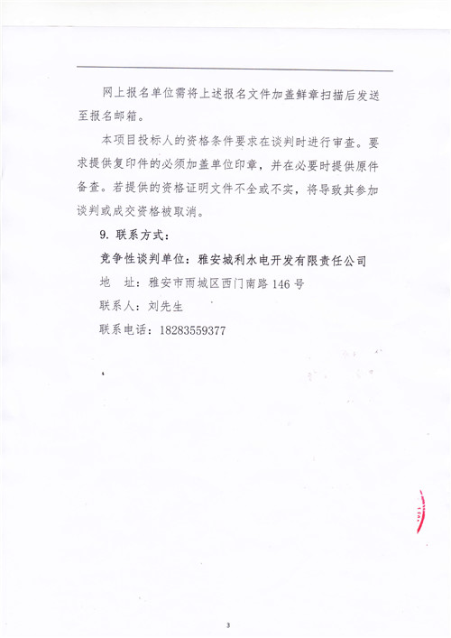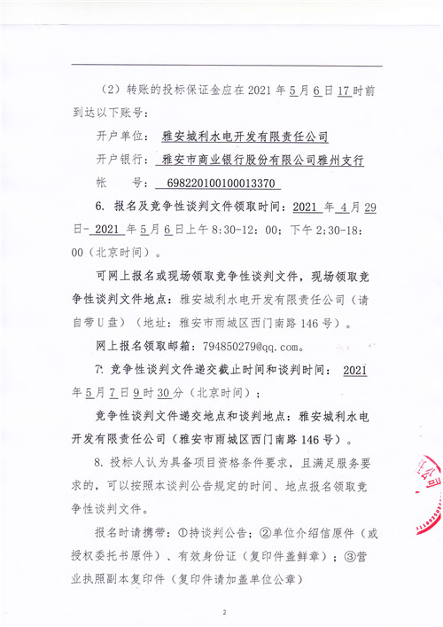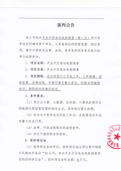 城利水電公司天全片區(qū)電站電能銷(xiāo)售(第二次)競(jìng)爭(zhēng)性談判
