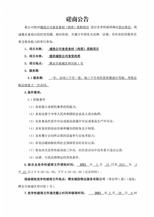 城投物業(yè)關(guān)于城投公司食堂食材(肉類(lèi))采購(gòu)項(xiàng)目競(jìng)爭(zhēng)性磋商公告