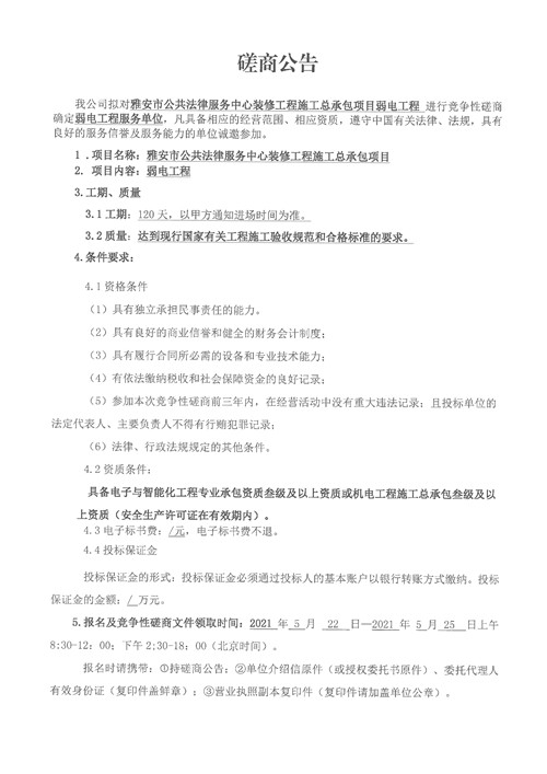 城投建工公司雅安市公共法律服務(wù)中心裝修工程施工總承包項目弱電工程競爭性磋商公告