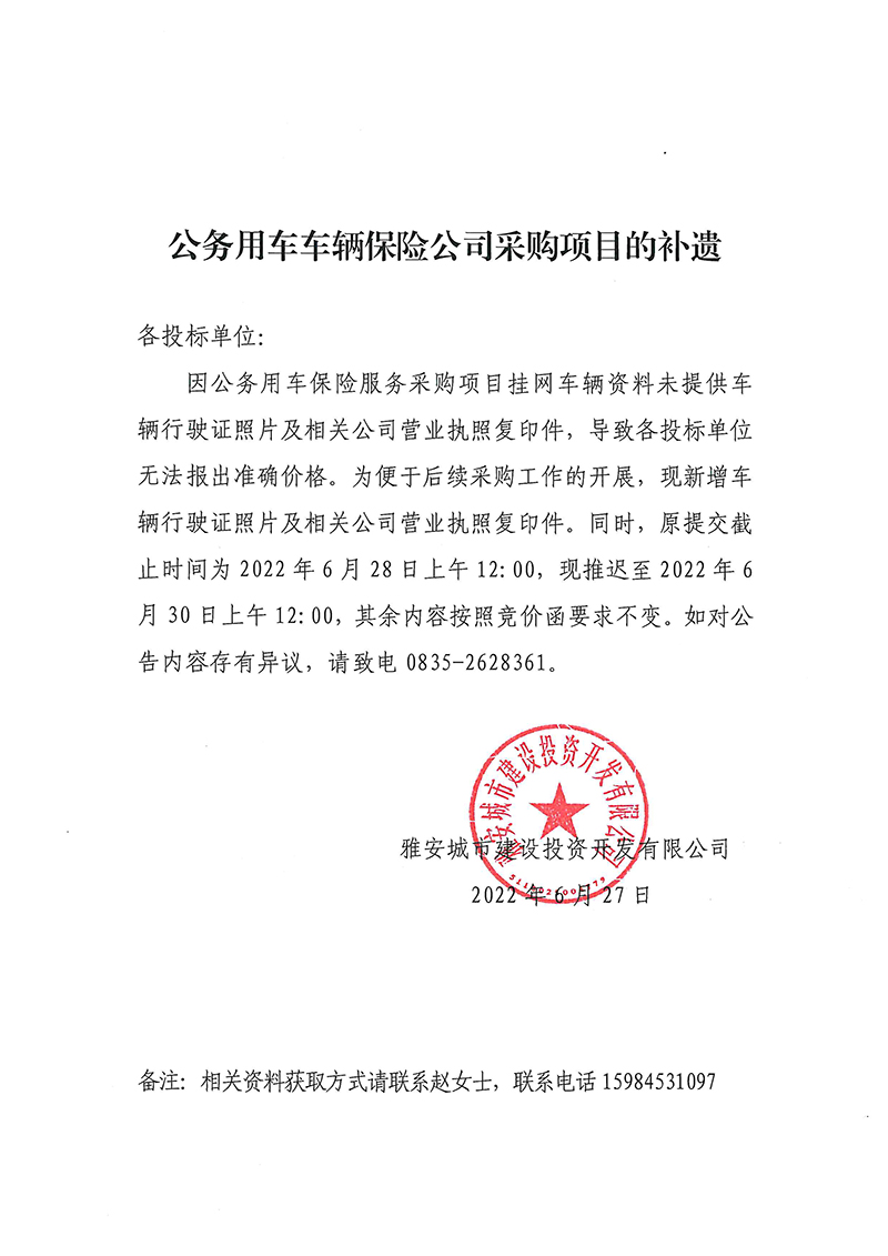 公務(wù)用車車輛保險公司采購項(xiàng)目的補(bǔ)遺