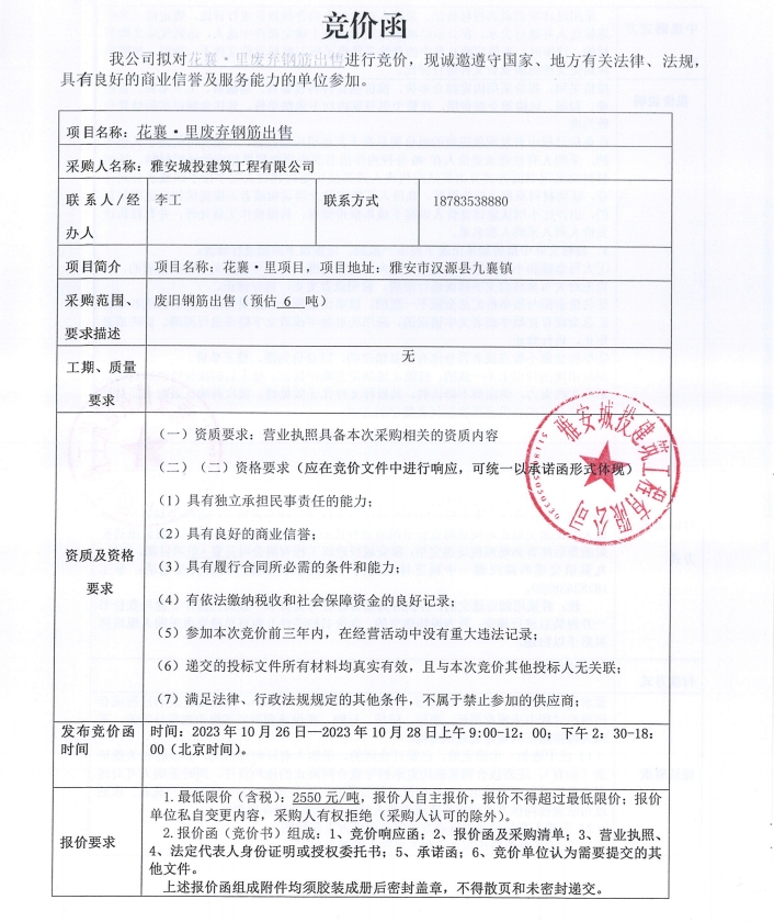 花襄·里廢棄鋼筋出售競(jìng)價(jià)公告
