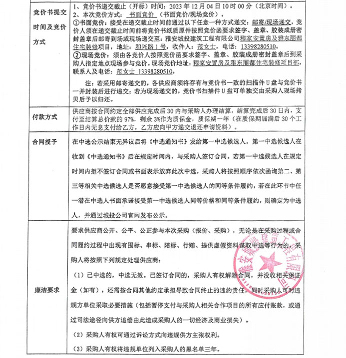 穆家安置房及雅東麗都住宅裝修項目家具采購競價公告
