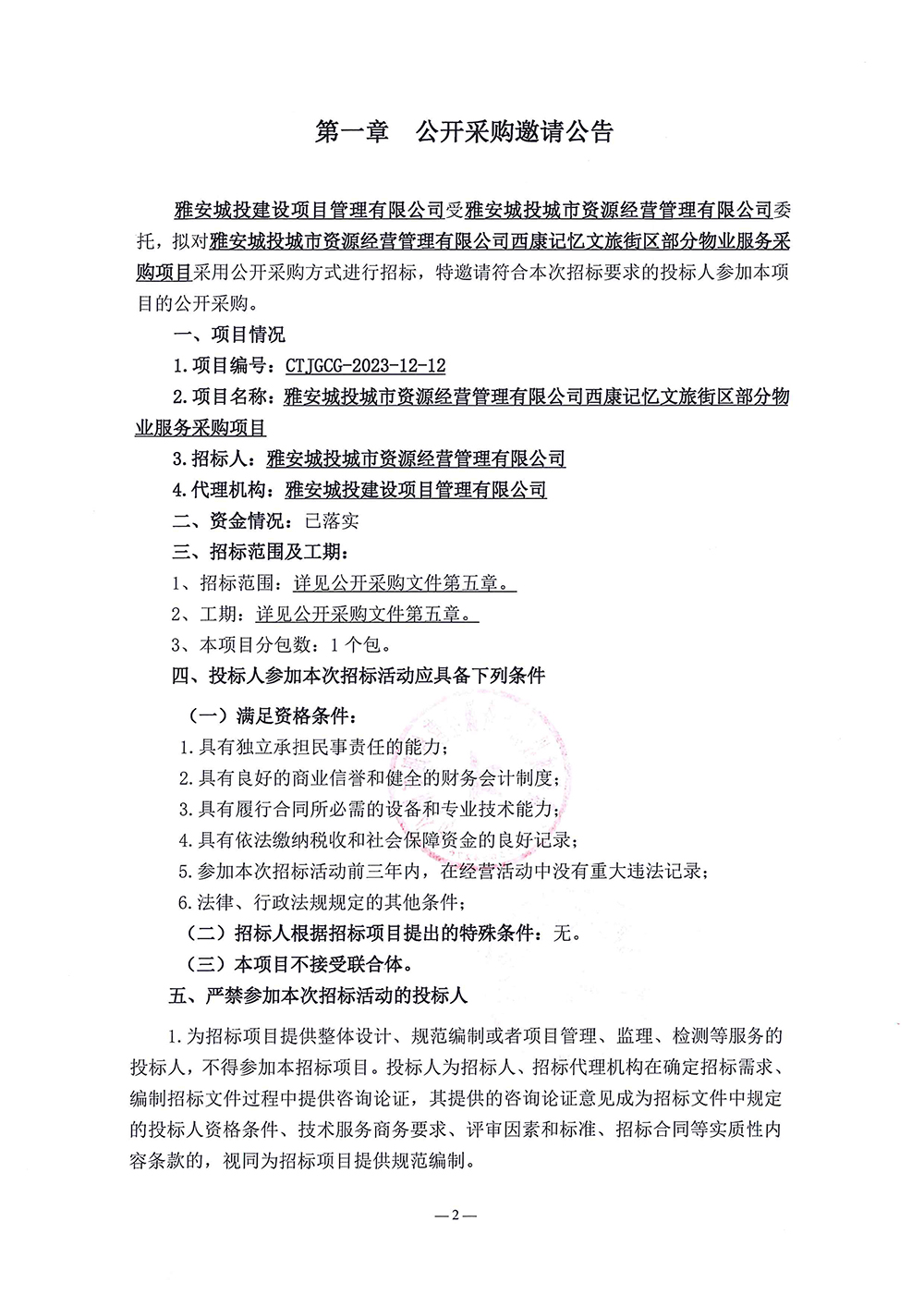 西康記憶文旅街區(qū)部分物業(yè)服務(wù)采購項(xiàng)且公開采購邀請公告