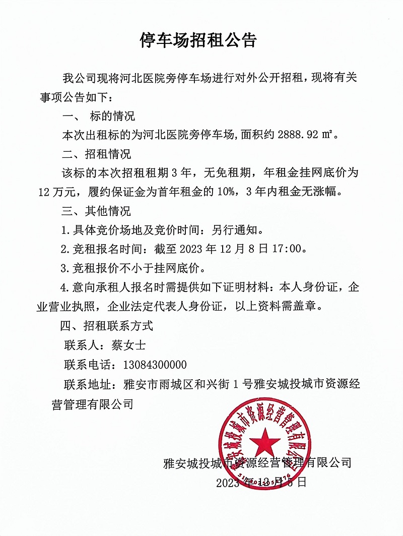 河北醫(yī)院旁停車場招租公告