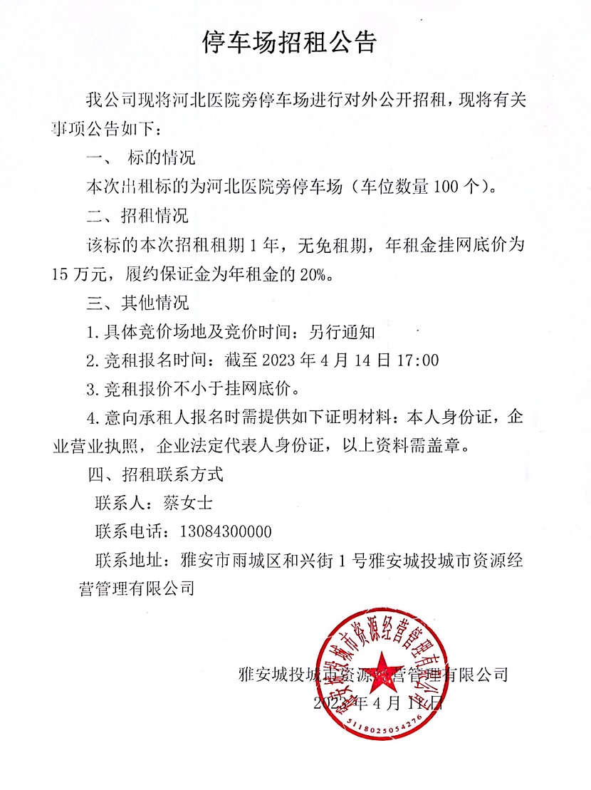 河北醫(yī)院旁停車場招租公告