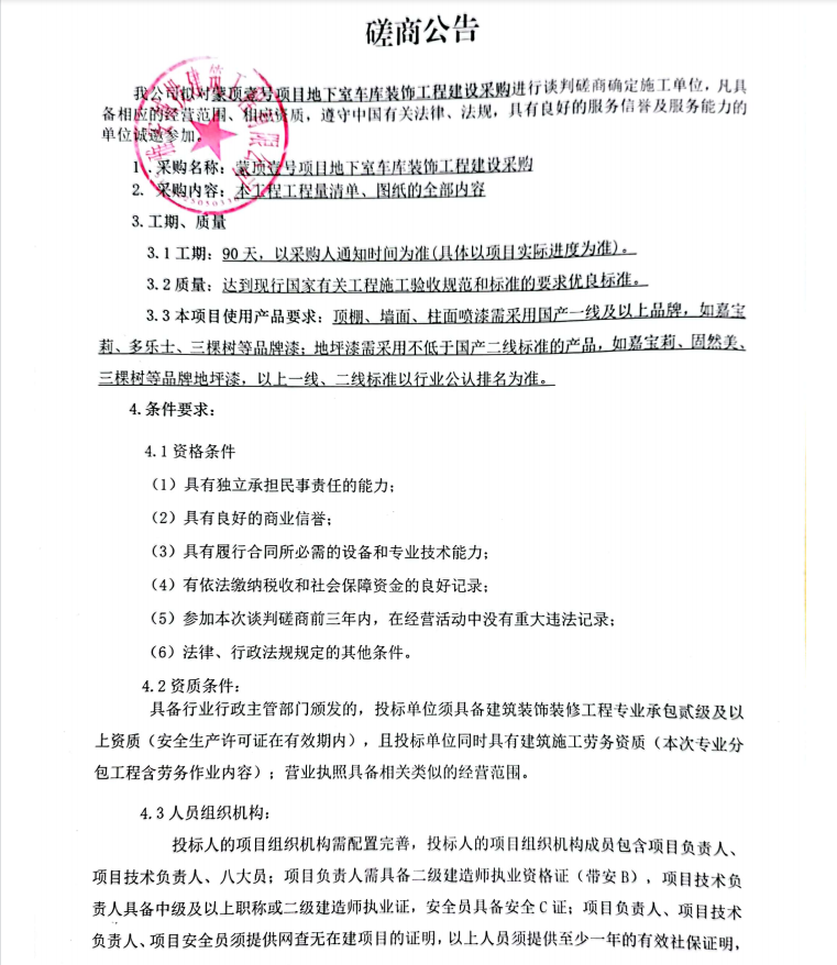 蒙頂壹號(hào)項(xiàng)目地下室車庫裝飾工程建設(shè)采購(gòu)談判磋商公告