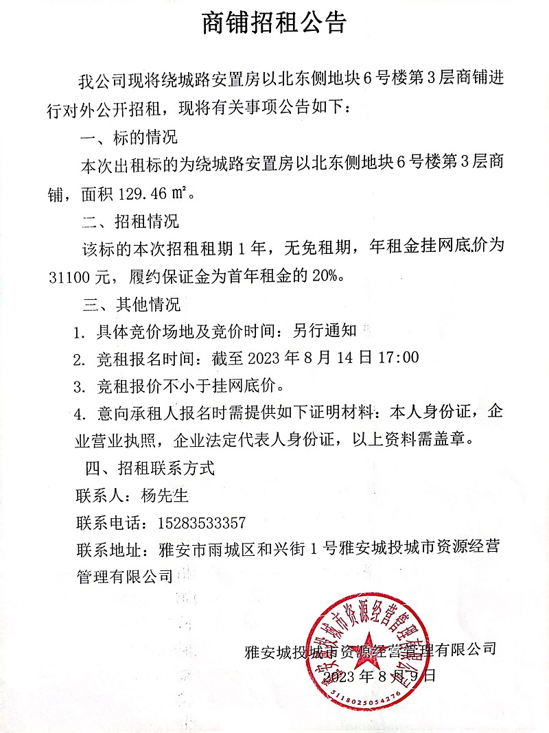 繞城路安置房以北東側(cè)地塊6號(hào)樓第3層商鋪招租公告