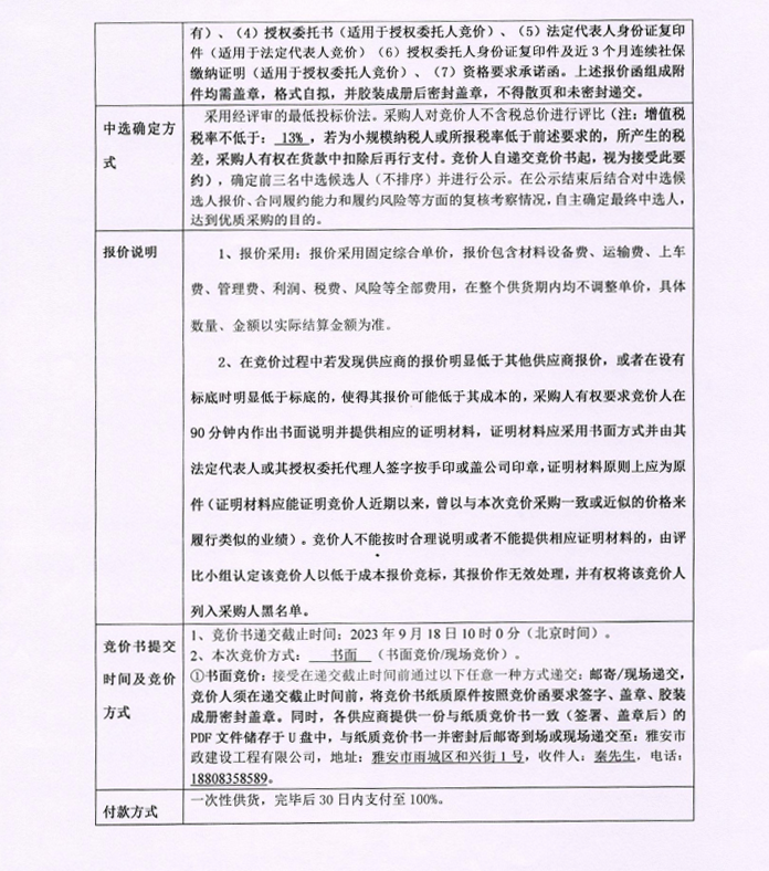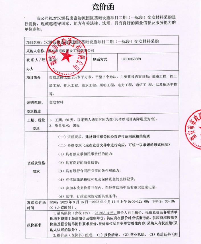 漢源縣唐富物流園區(qū)基礎設施項目二期(一標段)交安材料采購競價公告