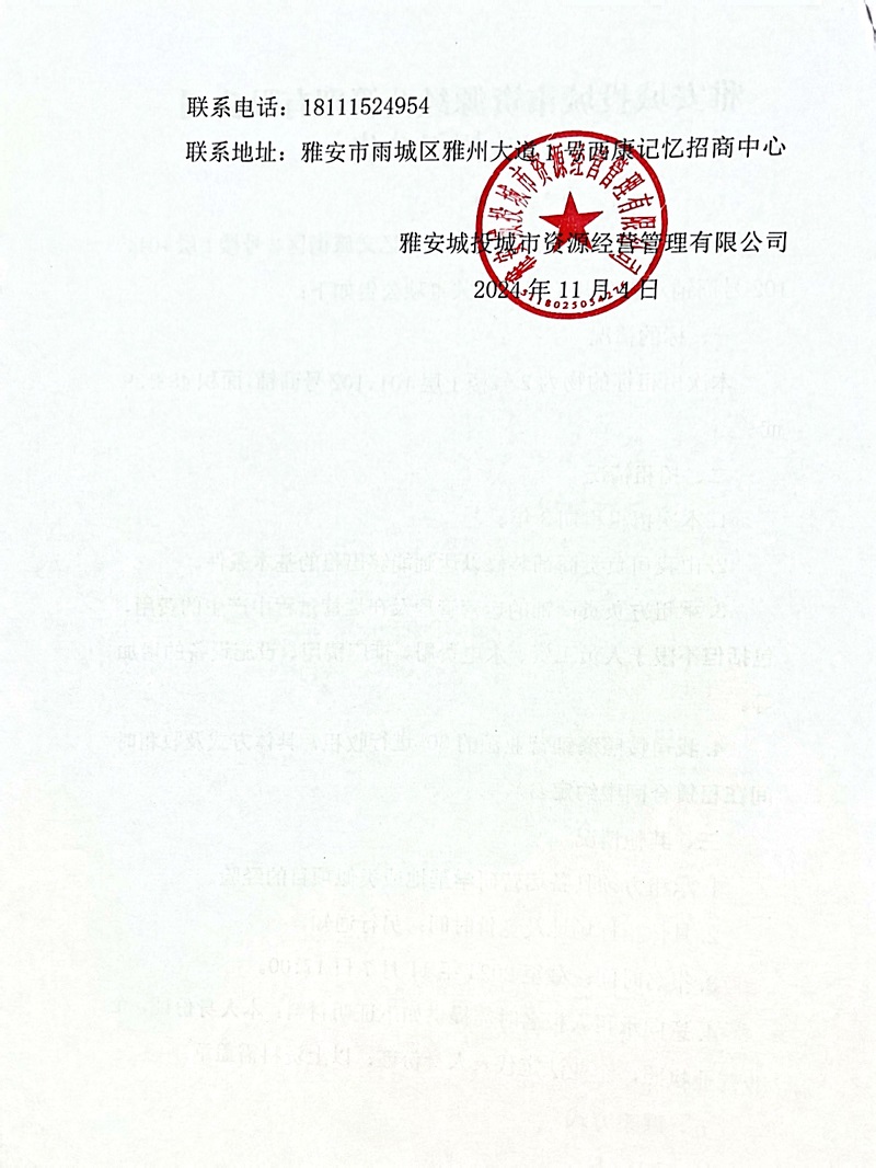 雅安城投城市資源經(jīng)營(yíng)管理有限公司雅州大道1號(hào)西康記憶文旅街區(qū)2號(hào)樓1層101、102號(hào)商鋪招租的公告