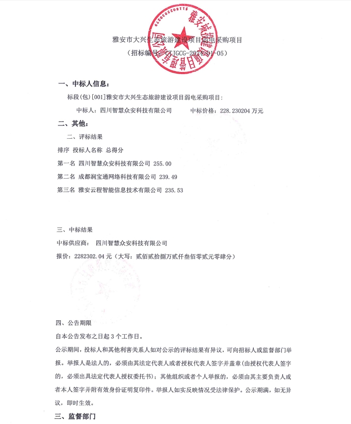 雅安市大興生態(tài)旅游建設(shè)項(xiàng)目弱電采購(gòu)項(xiàng)目公告