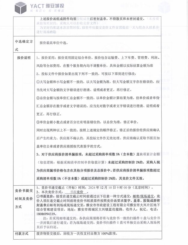 雅安市大興片區(qū)地下綜合管廊建設(shè)項目(二臺地庫房)廢圍擋出售競價公告