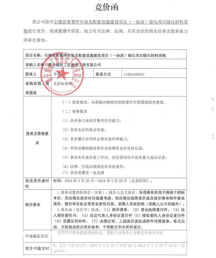 石棉縣智慧停車場及配套設(shè)施建設(shè)項目(一標(biāo)段)綠化項目綠化材料采購競價公告