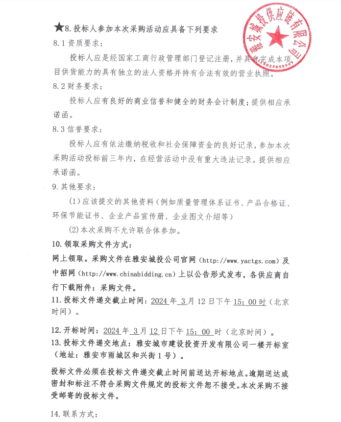 2024年3月至2025年2月雅安城投供應(yīng)鏈有限公司年度砂、石材料采購(gòu)公告