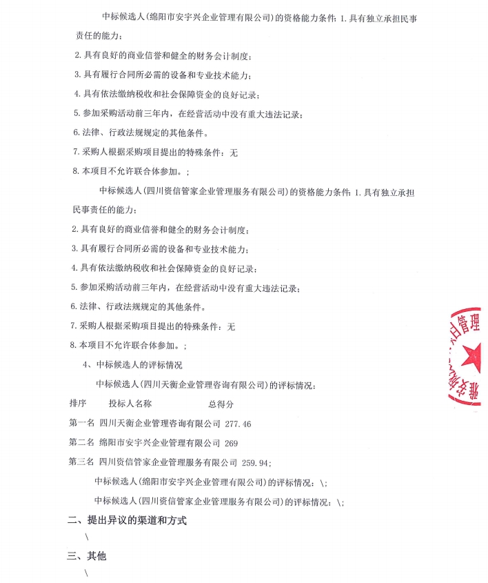雅安城投工匠建設(shè)工程有限公司水利水電施工總承包二級(jí)資質(zhì)申辦咨詢服務(wù)采購(gòu)項(xiàng)目中標(biāo)候選人公示