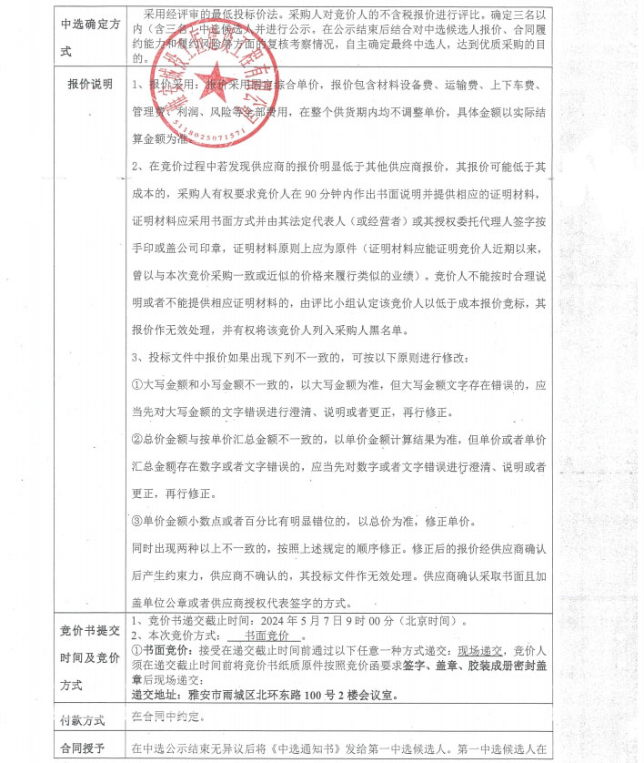 競價函-空調(diào)采購-雅州壹號院售樓部及樣板間