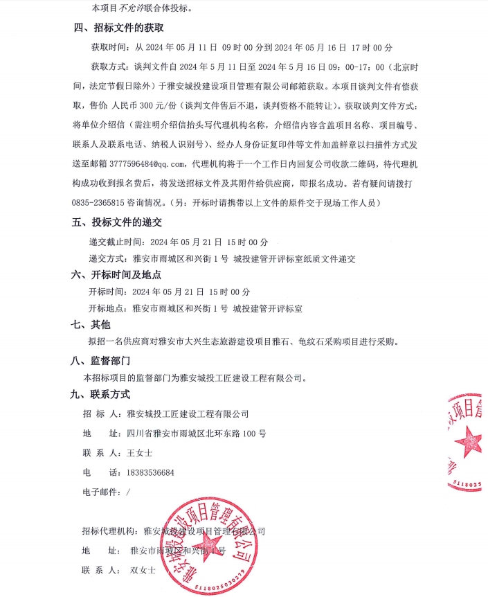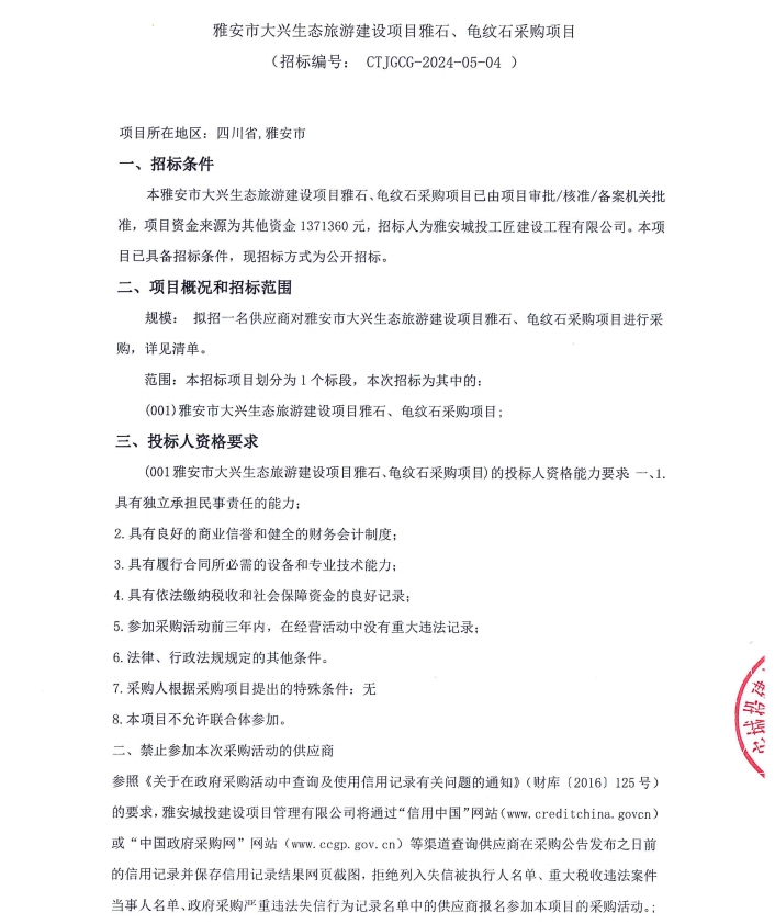雅安市大興生態(tài)旅游建設(shè)項(xiàng)目雅石、龜紋石采購(gòu)項(xiàng)目公告