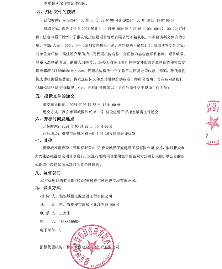 雅安市大興生態(tài)旅游建設(shè)項目水磨石、水洗石采購項目公告