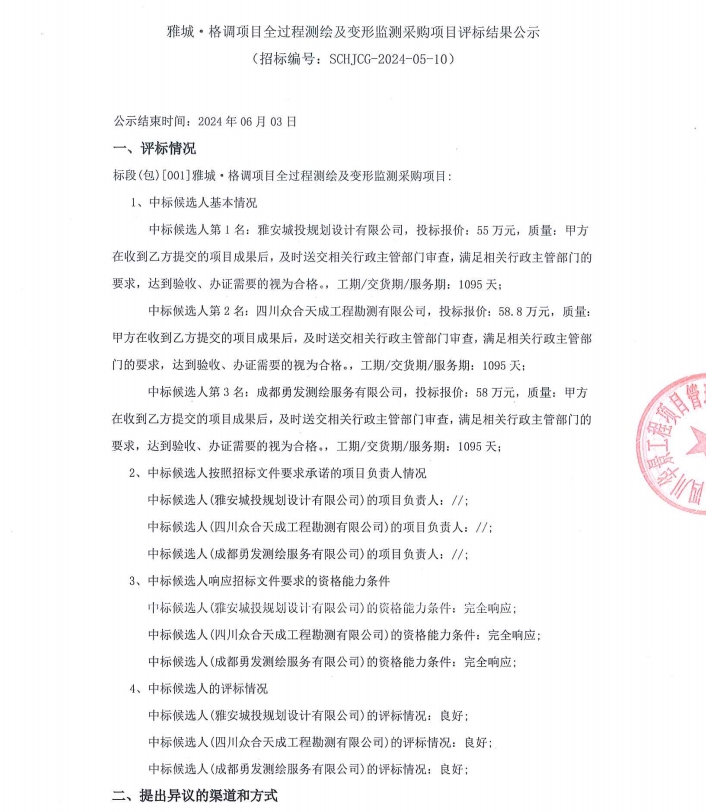 雅城·格調(diào)項(xiàng)目全過程測(cè)繪及變形監(jiān)測(cè)采購項(xiàng)目評(píng)標(biāo)結(jié)果公示