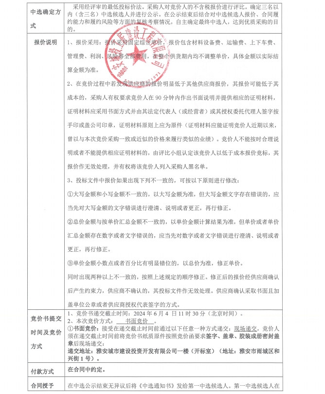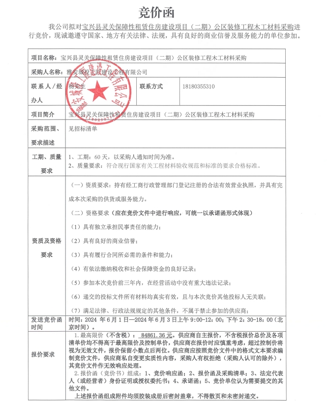 競價(jià)函-材料采購-安居房公區(qū)裝修
