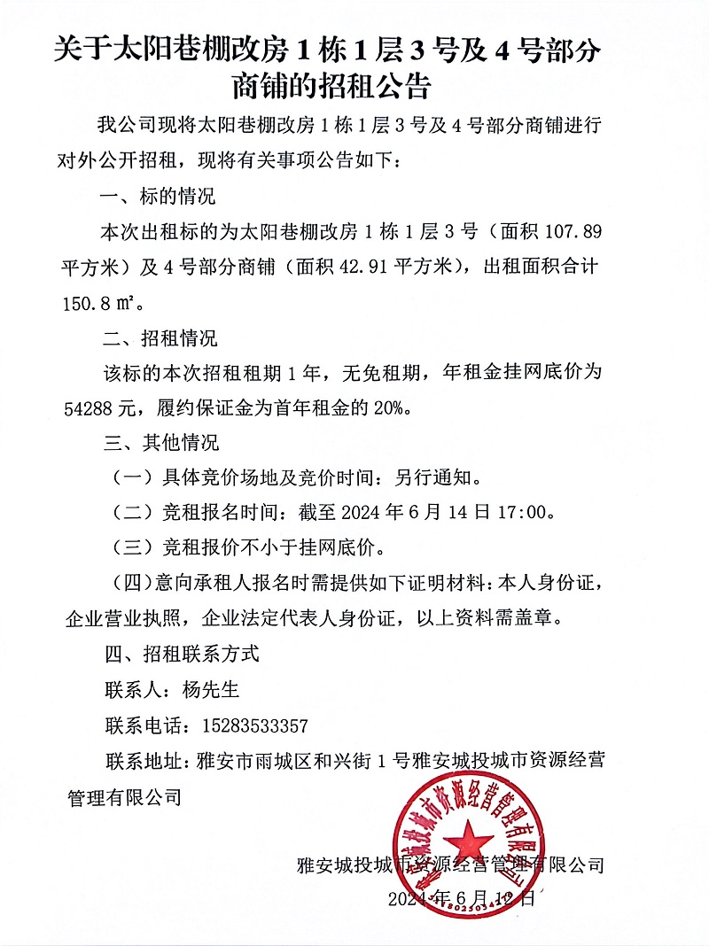 關(guān)于太陽(yáng)巷棚改房1棟1層3號(hào)及4號(hào)部分商鋪的招租公告
