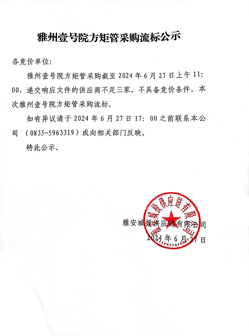 雅州壹號院方矩管采購流標公示