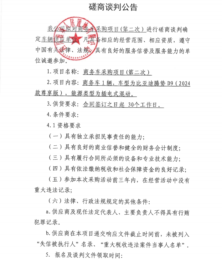 商務(wù)車采購(gòu)項(xiàng)目(第二次)磋商談判公告