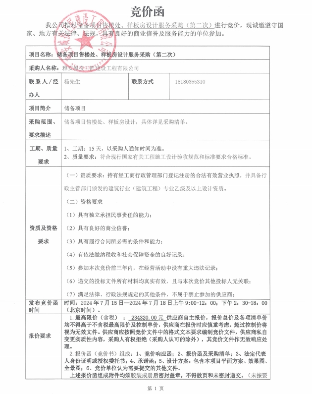 競價函-設(shè)計服務(wù)采購-儲備項目(第二次)
