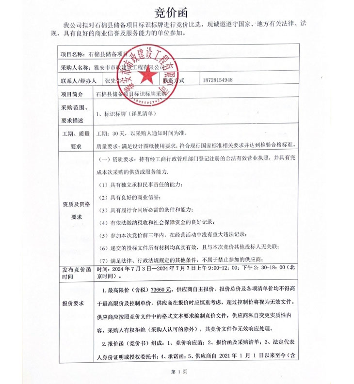 石棉縣儲(chǔ)備項(xiàng)目標(biāo)識標(biāo)牌競價(jià)公告