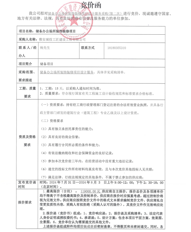 儲備辦公場所裝飾裝修項(xiàng)目設(shè)計(jì)服務(wù)采購(第二次)競價(jià)公告