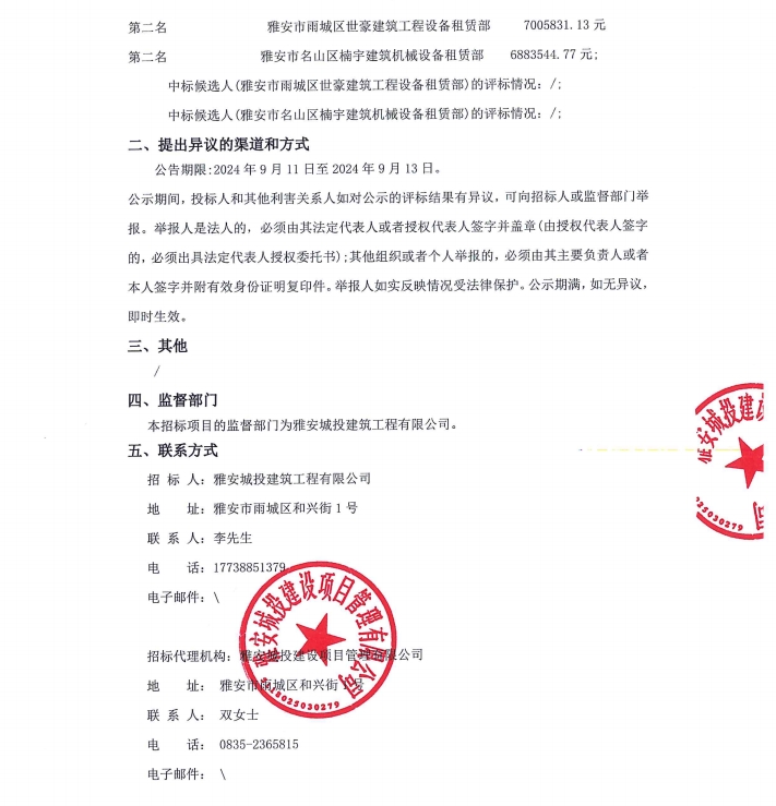 雅州印架管租賃采購(gòu)項(xiàng)目(項(xiàng)目名稱)服務(wù)/標(biāo)段中標(biāo)候選人公示公告