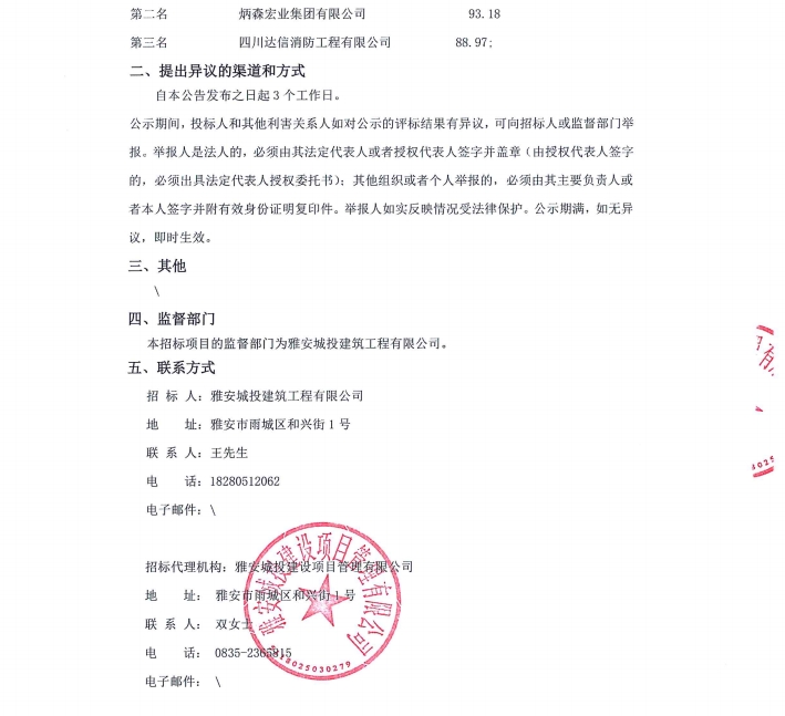 雅州壹號(hào)院消防及防排煙工程中標(biāo)候選人公示