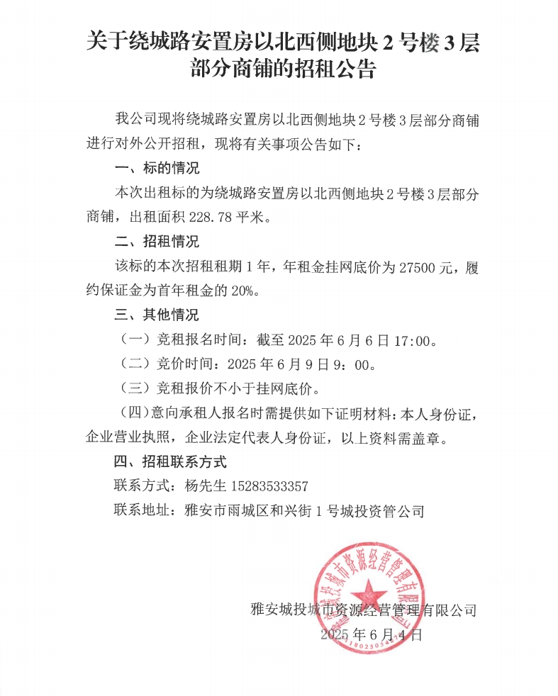 關于繞城路安置房以北西側地塊2號樓3層部分商鋪的招租公告