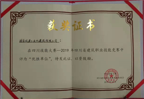 雅安成建工業(yè)化建筑有限公司榮獲“四川技能大賽——2019年四川建筑職業(yè)技術(shù)競賽優(yōu)秀組織獎”